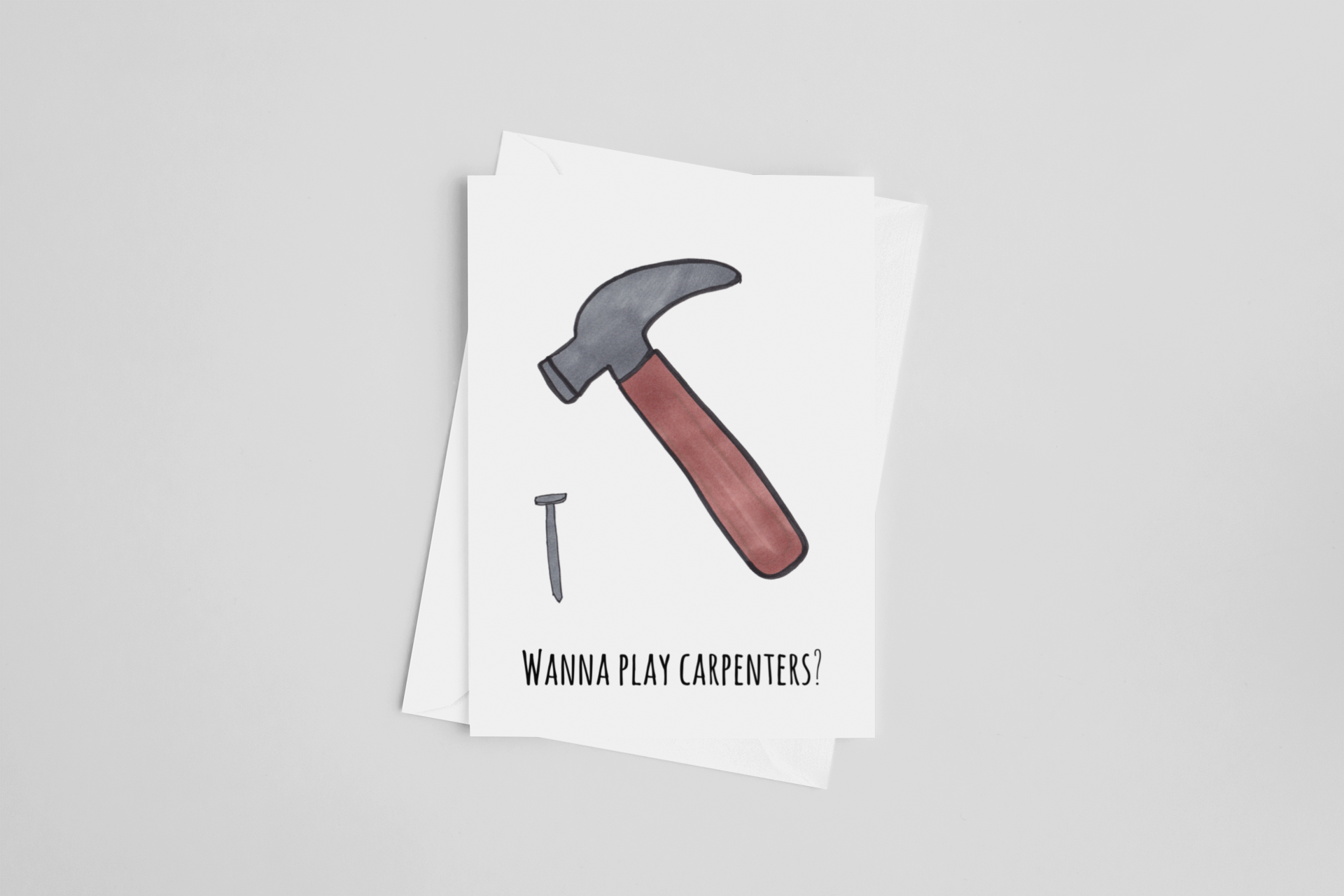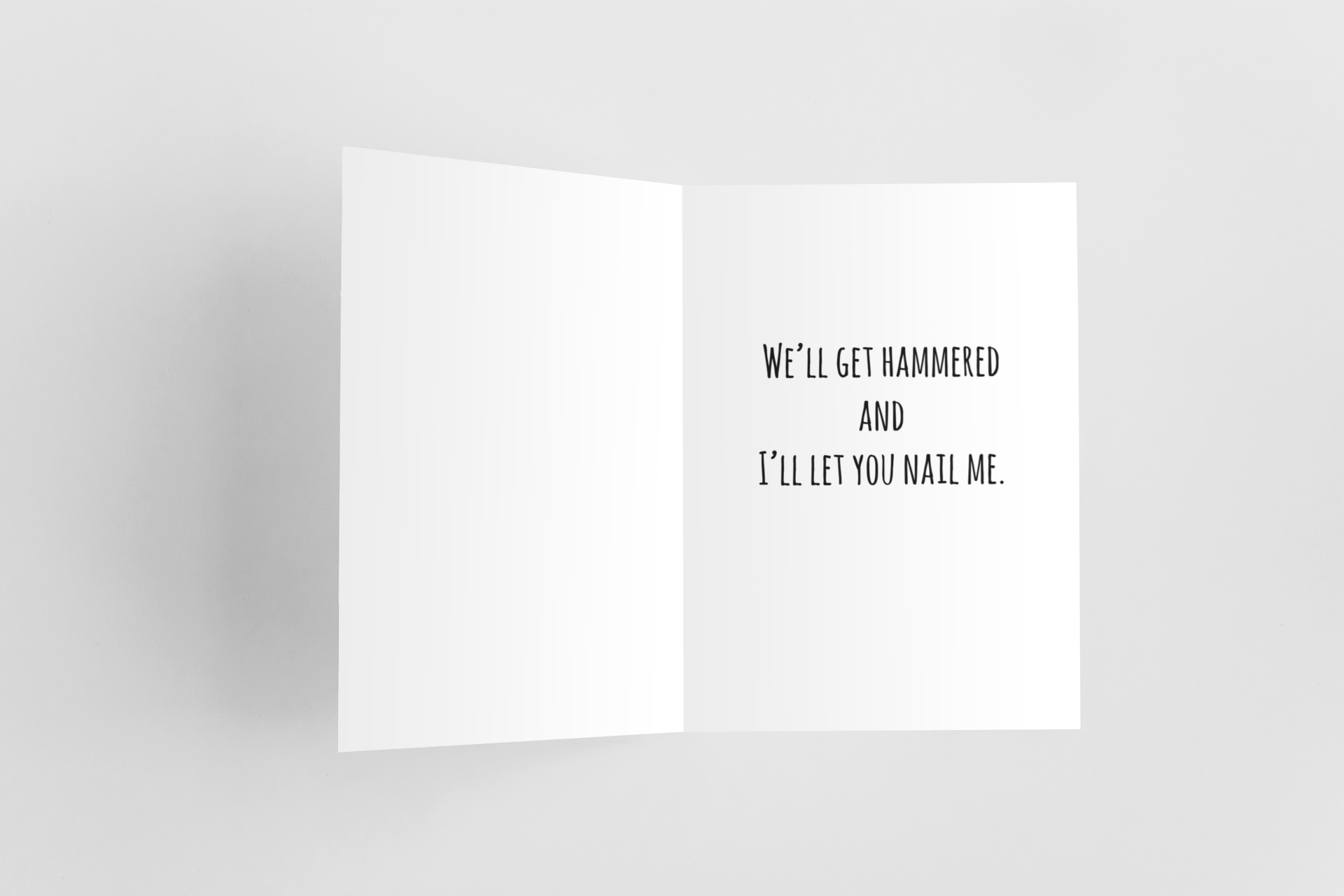 5 x 7 Greeting Card White envelope Outside - Wanna play carpenters? Inside - We'll get hammered and I'll let you nail me.